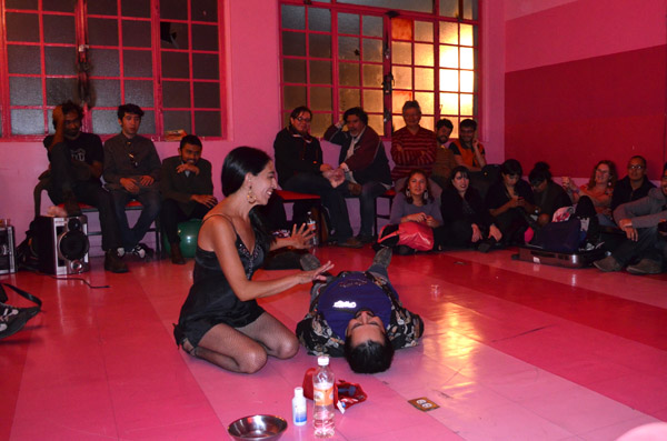 Acción que consiste en la perversión del ojo como órgano sexual, el porno es aquello que muestra lo que esta fuera de escena, lo obsceno, el tabu de lo que no se ve normalmente. En este caso es el ojo el objeto de deseo.